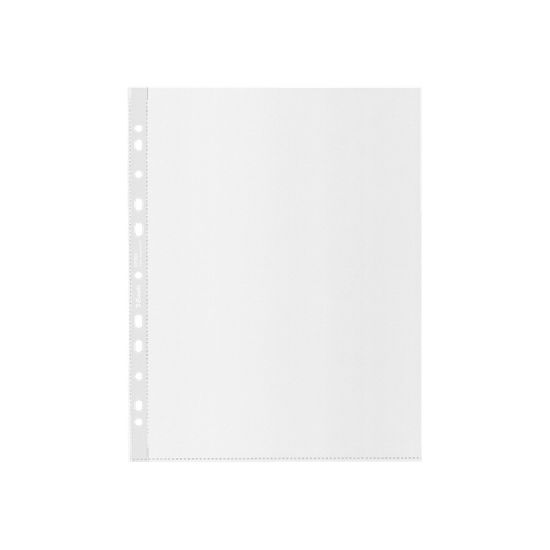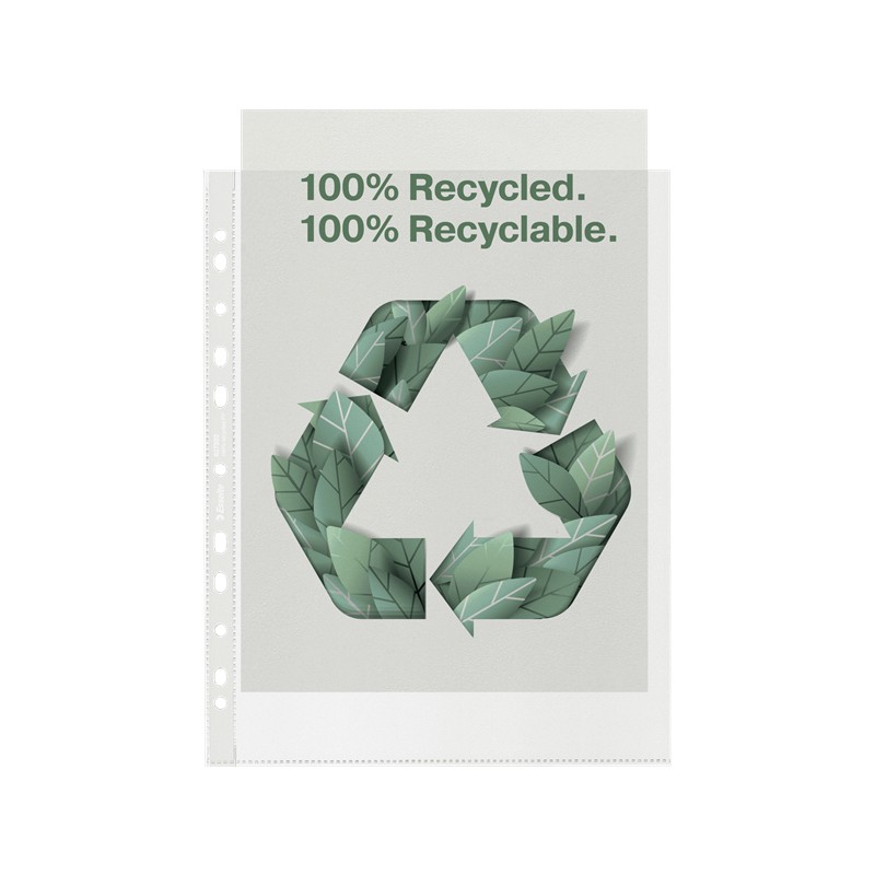 Folie de protecție Esselte A4 Maxi nedăunătoare mediului, pentru folosirea zilnică, creată din material rezistent 100% reciclat PP. Perforațiile multiple de pe marginea foliei permite depozitarea documentelor în bibliorafturi sau caiete mecanice. Permite depozitarea mai multor documente, comparativ cu foliile standard, până la 80 de coli. Produsul poate să fie refolosit și reciclat din nou.