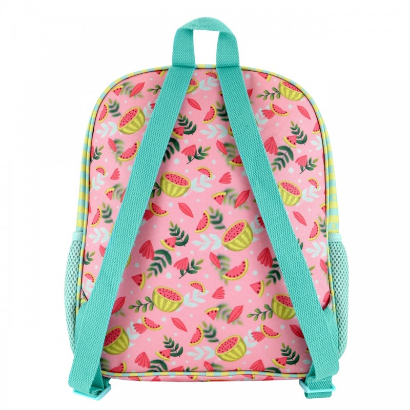 Exista 2 buzunare din plasa pe ambele parti ale rucsacului si curele de umar, reglabile.