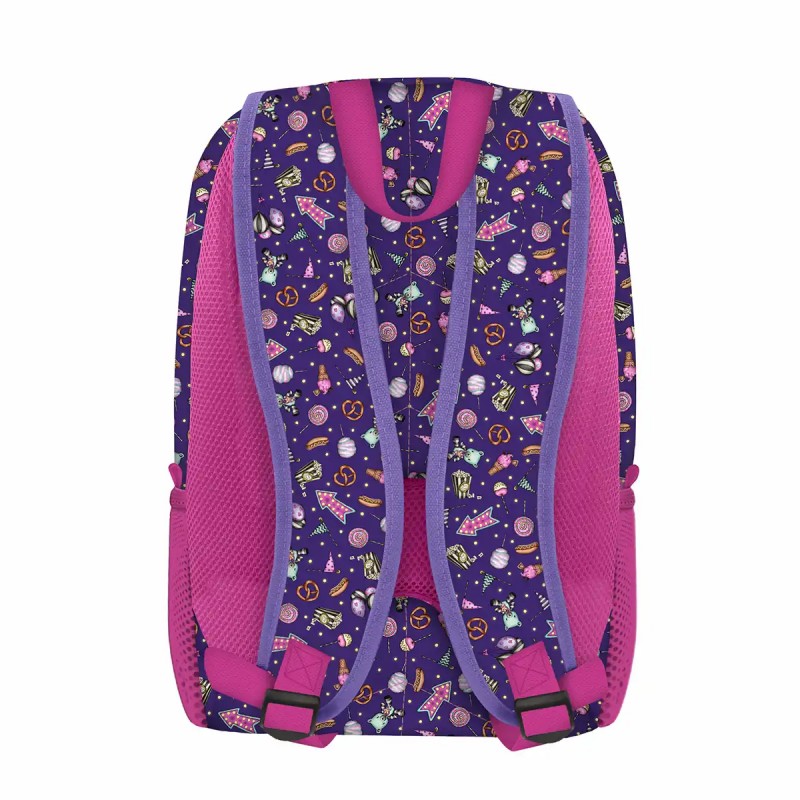 Compartimentarea eficienta ii permite fetitei sa isi organizeze bagajul mai usor. Are doua compartimente mari, complet captusite care se inchid cu fermoar bidirectional. Buzunarul frontal este mare, incapator captusit si inchis cu fermoar. Are atasat un breloc pom-pom extrem de pufos. Emblema Santoro London Gorjuss iese in evidenta atat prin culoare cat si prin designul sau unic. Cele doua buzunare laterale sunt din plasa, foarte utile pentru a tine la indemana sticla de apa sau alte lucruri de imediata necesitate.