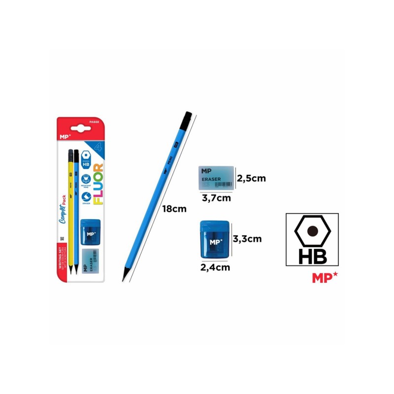 Set 2 creioane Main Paper, HB, radiera, ascutitoare cu container, albastru.