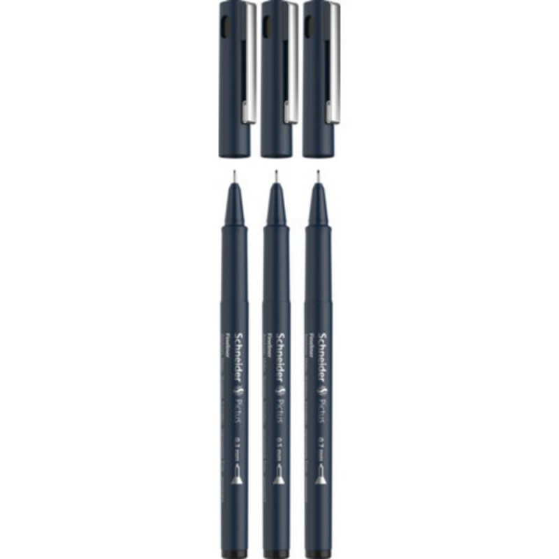 Liner pentru desen tehnic SCHNEIDER Pictus, varf fetru (0.3/0.5/0.7mm), 3 buc/set - negru