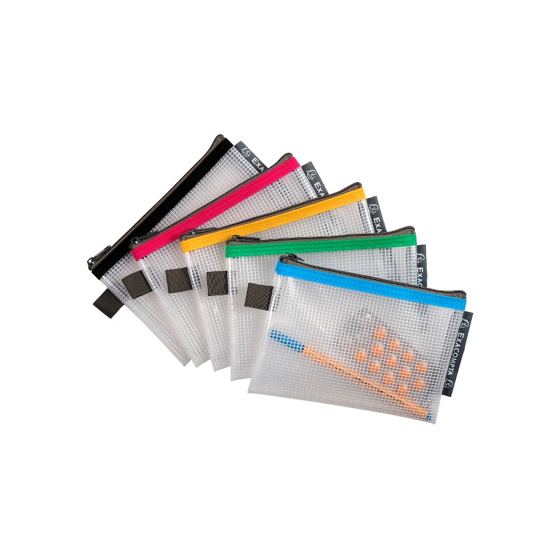 - Mapa cu fermoar Exacompta este fabricata din plastic EVA, un material de ambalare obisnuit, cunoscut pentru rezistenta si flexibilitate, greu de rupt si usor de transportat.