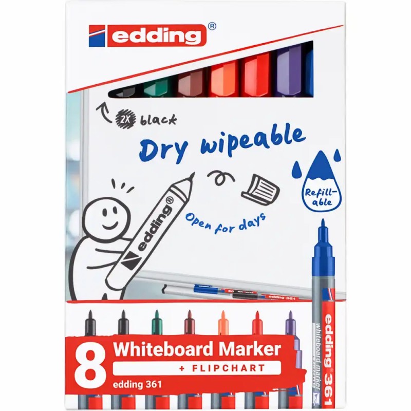 Marker pentru tabla edding 361, varf rotund, 1 mm, 8 bucati/set