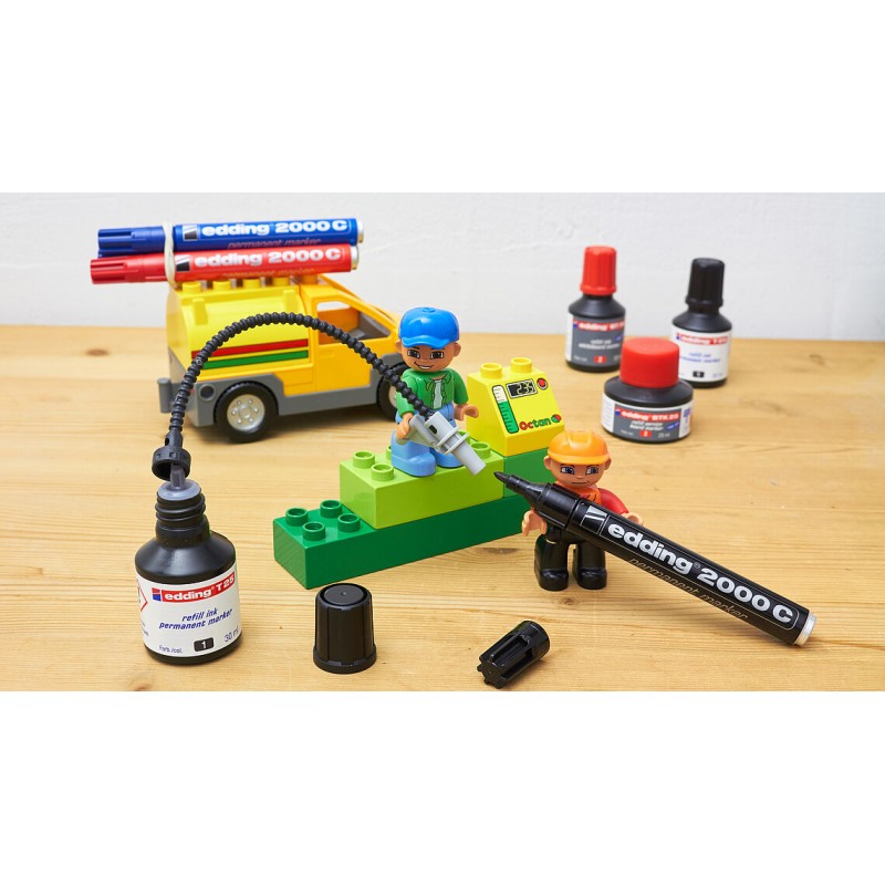 Cand vine vorba de etichetare, marcaje si scriere clara si indrazneata, markerul permanent edding 2000 C este alegerea potrivita. Acest marker poate fi utilizat pentru a realiza marcaje durabile pe aproape orice tip de suprafata - de la fotografii, plastic si piele pana la lemn, piatra si metal. Un ajutor de nepretuit pentru sarcinile zilnice, este un element indispensabil in orice bucatarie, birou sau atelier, stabilind standardul suprem pentru markerele permanente.