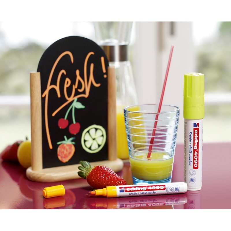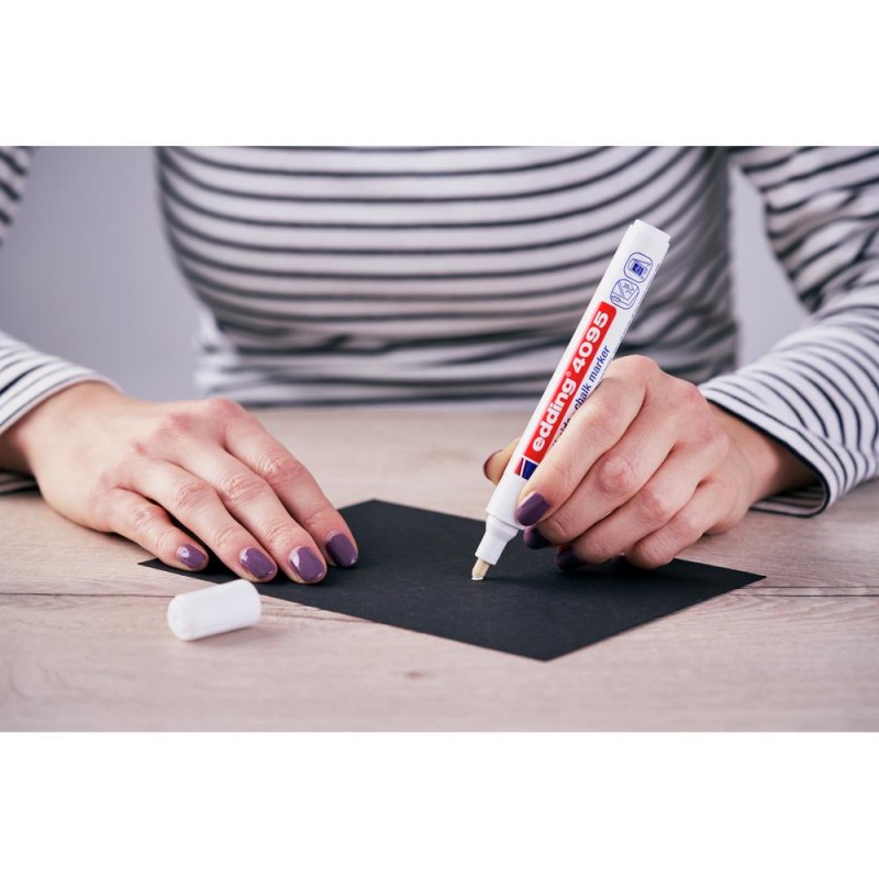 Marker pe baza de creta lichida pentru decoratiuni pe sticla, ferestre, table si alte suprafete non-poroase. Opacitate excelenta, chiar si pe suprafetele inchise la culoare sau transparente. Varf rotund, grosime varf: 2-3 mm.