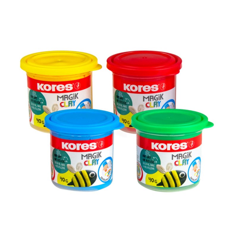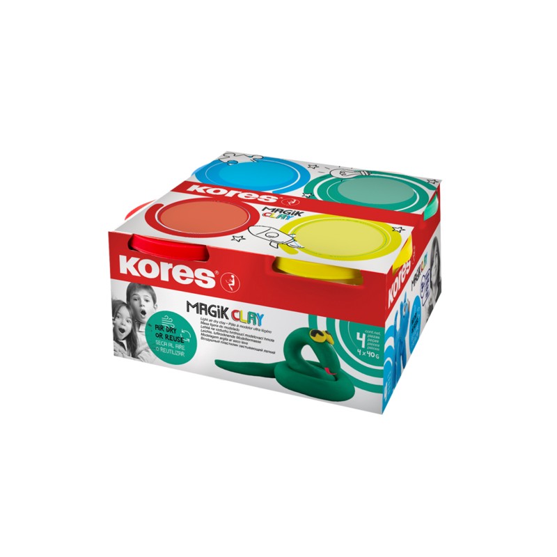 Plastilina Kores Magic Clay, 40 g/culoare, 4 culori basic/set