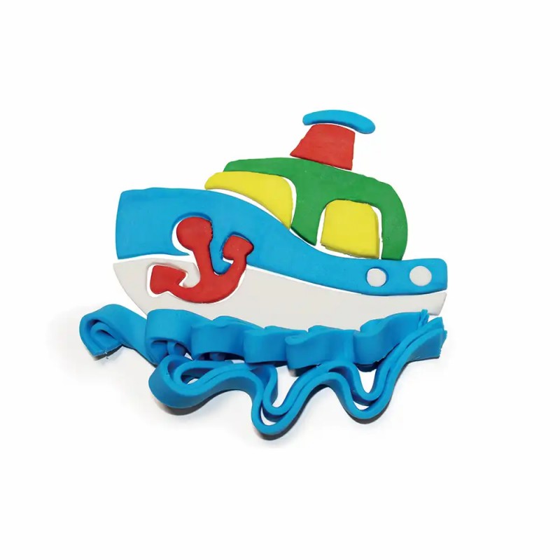 Pasta de modelaj fina, gluten-free, pachet 100 g, 4 culori asortate si o matrita cu diverse accesorii cu tema barca.