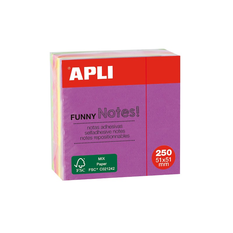 Cub notite autoadezive Apli structurate in 4 culori, pentru mesaje amuzante si pline de culoare. Unitate de vinzare: 250 file/bucata. Dimensiuni: 51 x 51 mm. Culoare: nuante intense, roz/magenta/galben/verde/portocaliu.