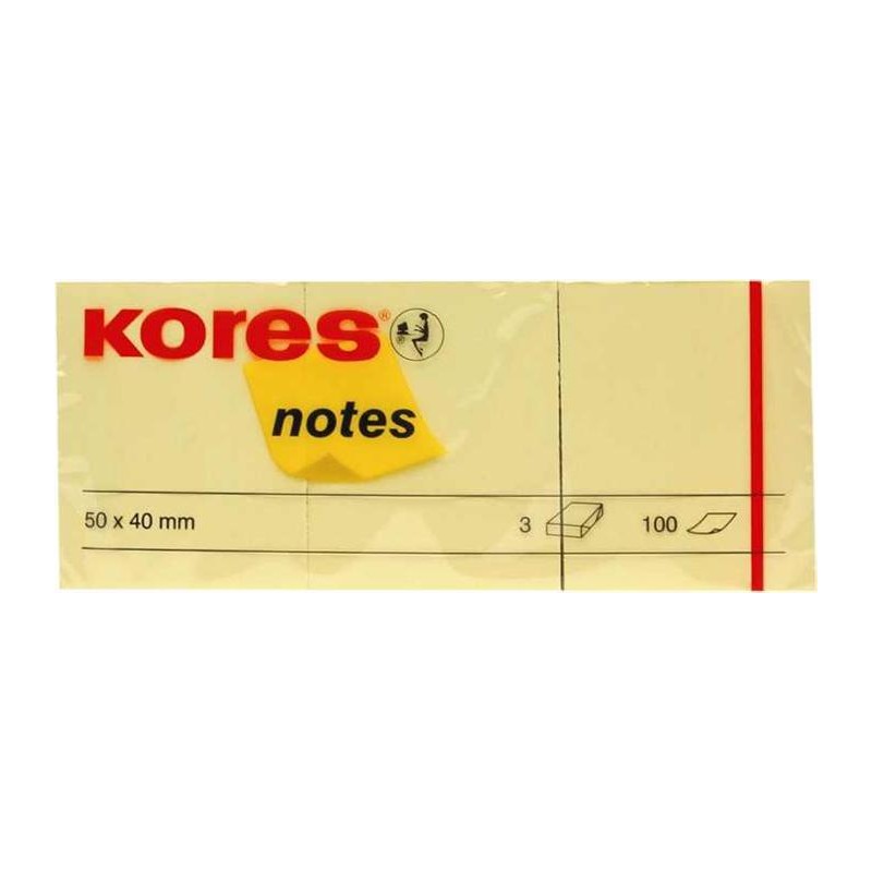 | Notite autoautoadezive Kores, 50 x 40 mm, 100 file, 3 bucati/set, galben pastel. |