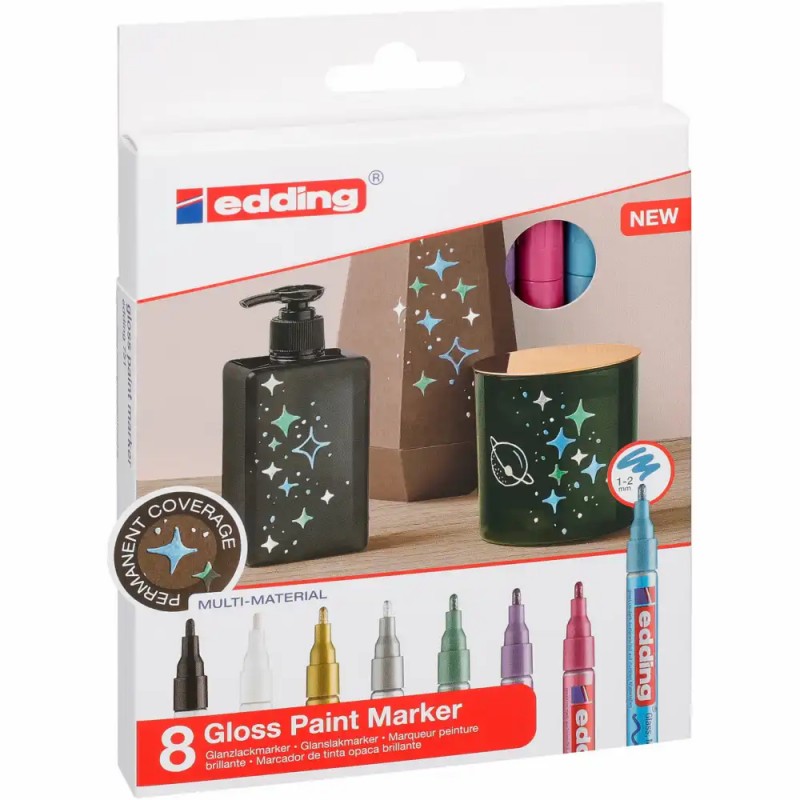 Marker edding 751 cu vopsea, corp metalic, varf rotund, 1-2 mm, set 8 culori