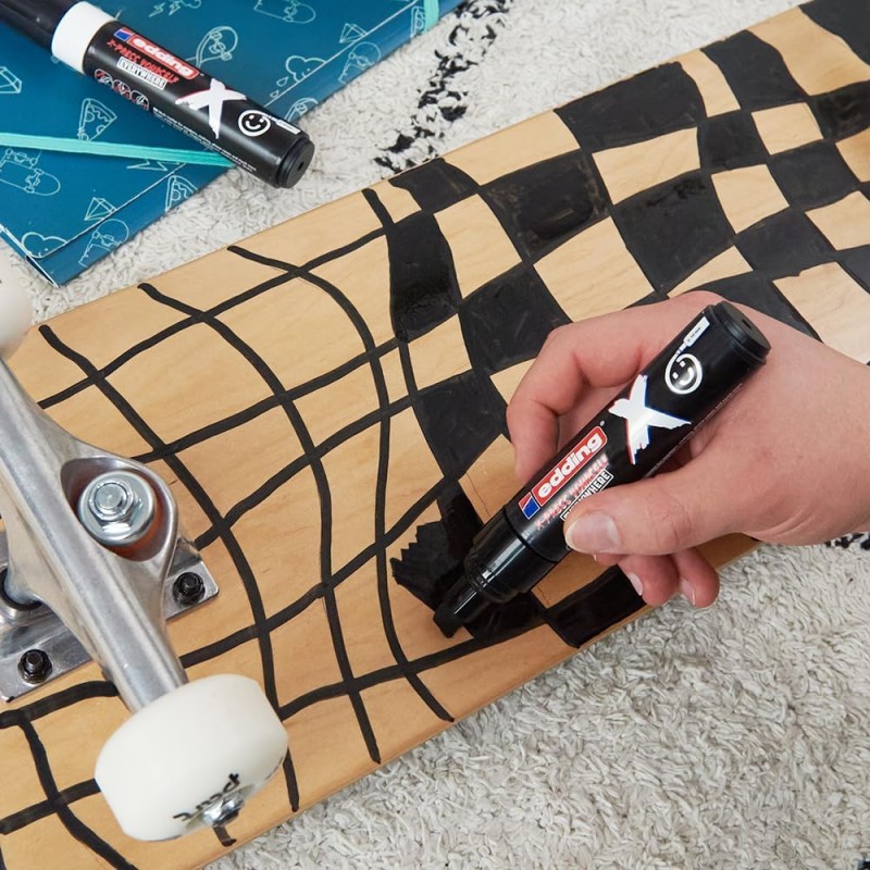 Transforma obiectele de zi cu zi in opere de arta cu acest set de markere acrilice de inalta calitate. Fie ca vrei sa personalizezi haine, incaltaminte, rucsacuri sau carcase de telefon, edding X Multi Marker este partenerul perfect pentru toate ideile tale creative. Cu un varf tesit de 2-10 mm, poti crea atat linii groase, cat si subtiri, adaptandu-ti stilul de desen dupa dorinta.
