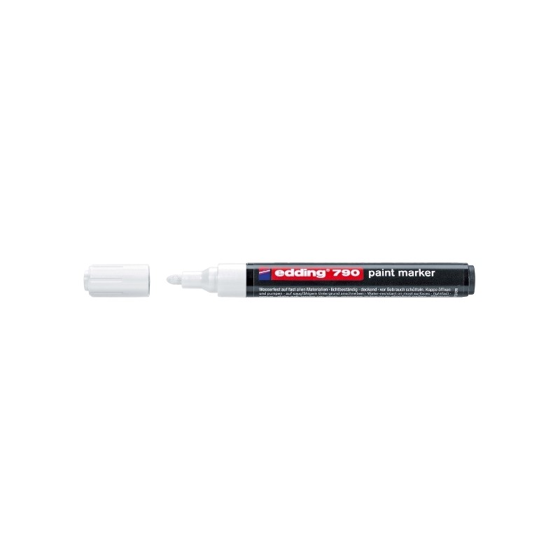 Marker permanent Edding 790, cu vopsea, varf rotund, 2-3 mm, alb