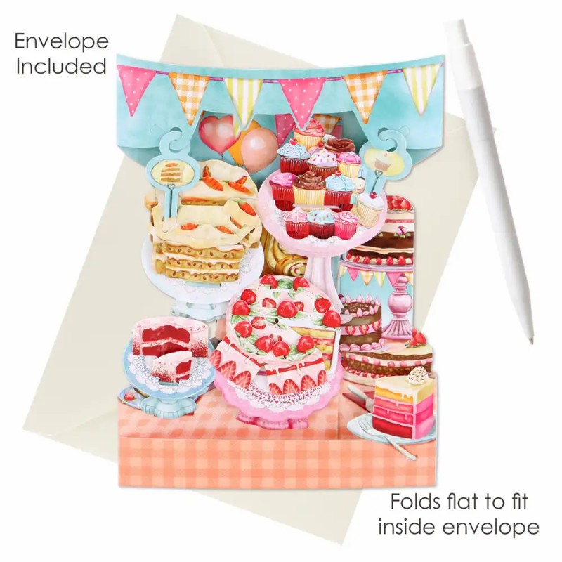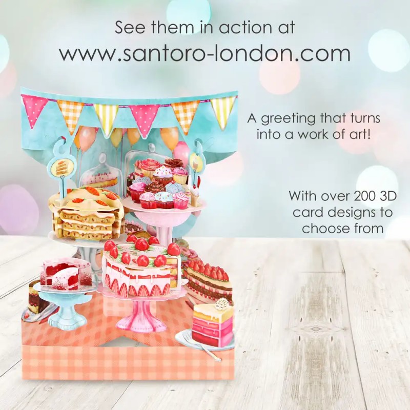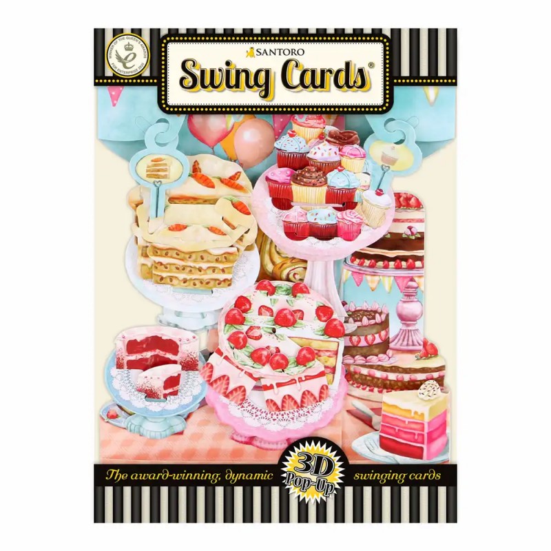 Felicitare 3D, Santoro, Swing Card, Pop-up, design Prajituri