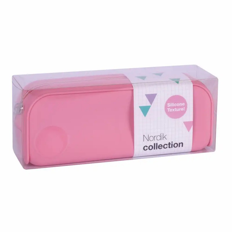 Penar din silicon, culoare roz, din Colectia Nordik. Format individual intr-o cutie de plastic cu euro-orificiu. Silicon de inalta calitate cu finisaj moale la atingere. Penare cu fermoar, flexibile si modelabile. Rezistente la apa si foarte usor de curatat.