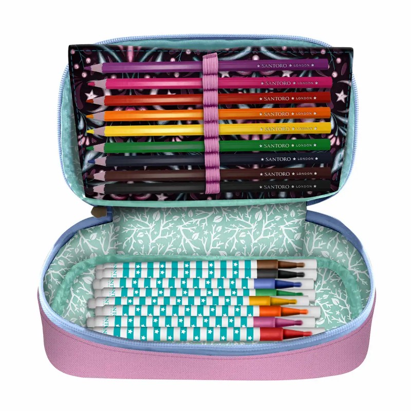 Descopera penarul pliabil 'Little Mushroom', unde organizarea intalneste magia! Acest penar fermecator se deschide ca o carte de povesti, dezvaluind un organizator plin cu articole de papetarie: 18 carioci si 18 creioane colorate, alaturi de esentiale precum o ascutitoare si o radiera.