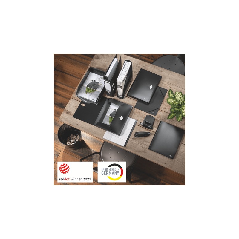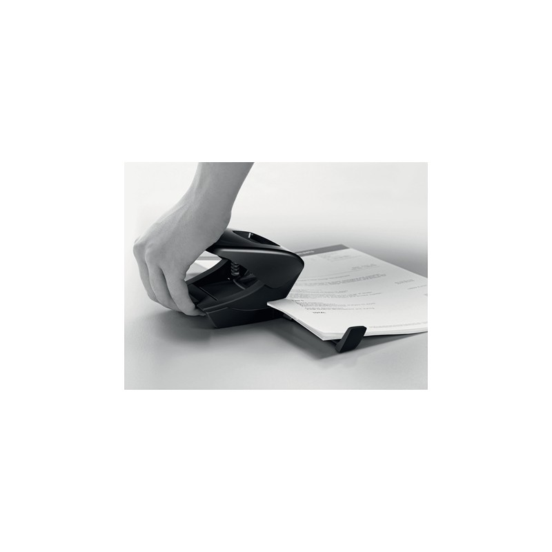 Perforator robust, din plastic, pentru utilizare zilnică, fabricat din materiale reciclate (post-consum). Cu impact neutru asupra mediului și reciclabil 100%, putând fi demontat și valorificat complet. Sistem de perforare ergonomic și burghie ultra-ascuțite, pentru o perforare fără efort.