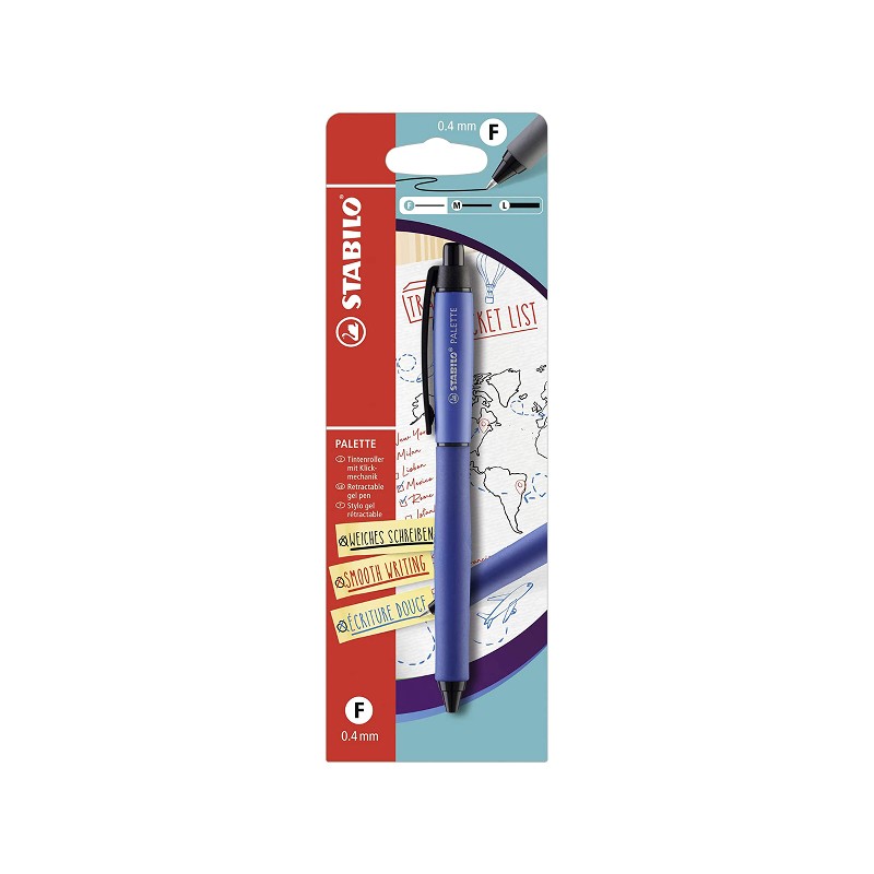 Pix cu gel Stabilo Palette, cu mecanism, varf 0.4 mm, albastru, blister.