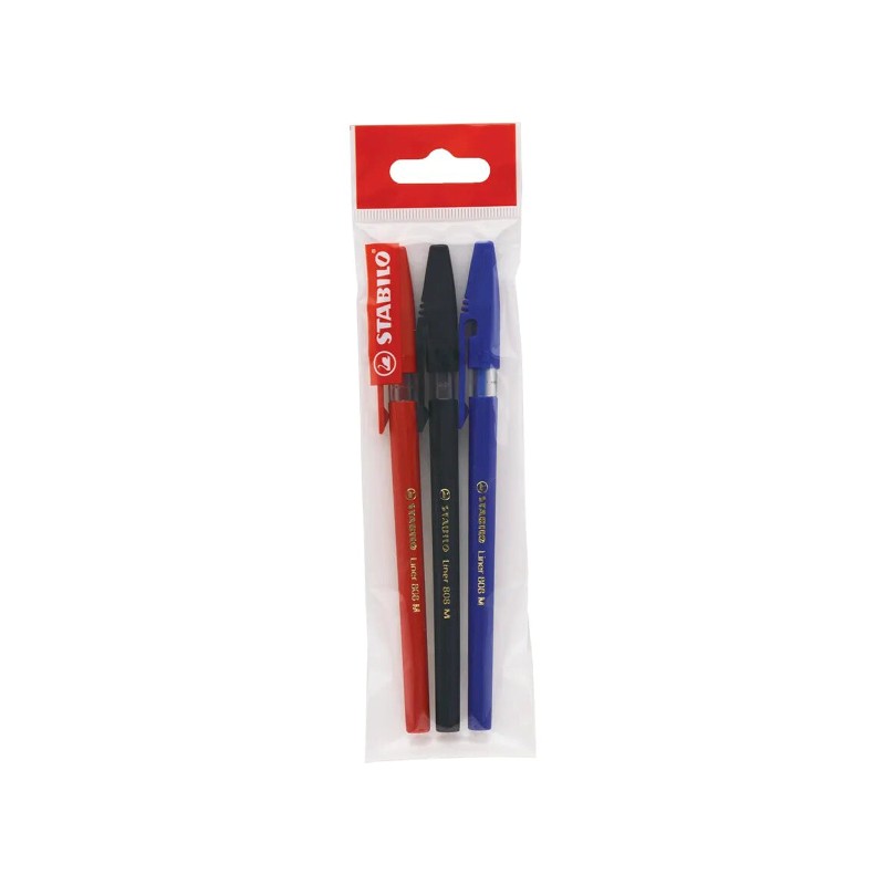 Pix fara mecanism Stabilo liner, M, 0.45 mm, 3 culori/blister eco, albastru, negru, rosu.