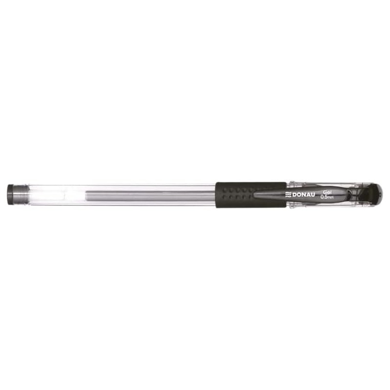 Pix transparent cu gel, rubber grip, 0.5 mm, cerneala rezistenta la apa, DONAU - negru