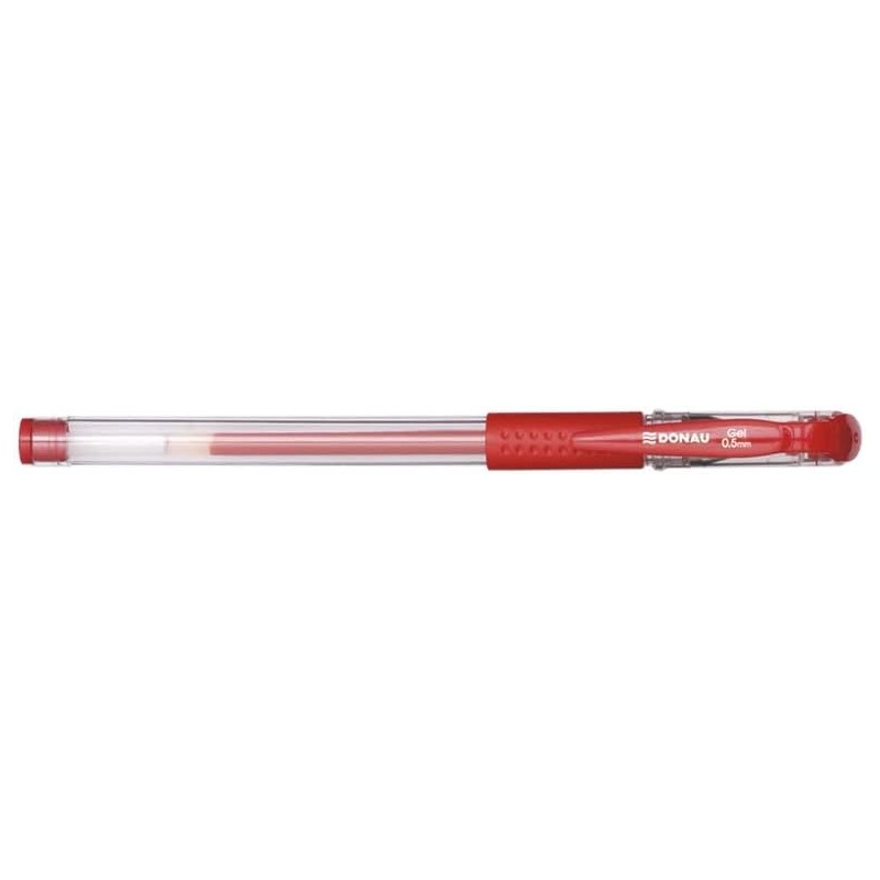 - Pix transparent cu gel DONAU, rosu, cu grip din cauciuc pentru scriere confortabila si varf de 0.5 mm pentru linii fine si precise.