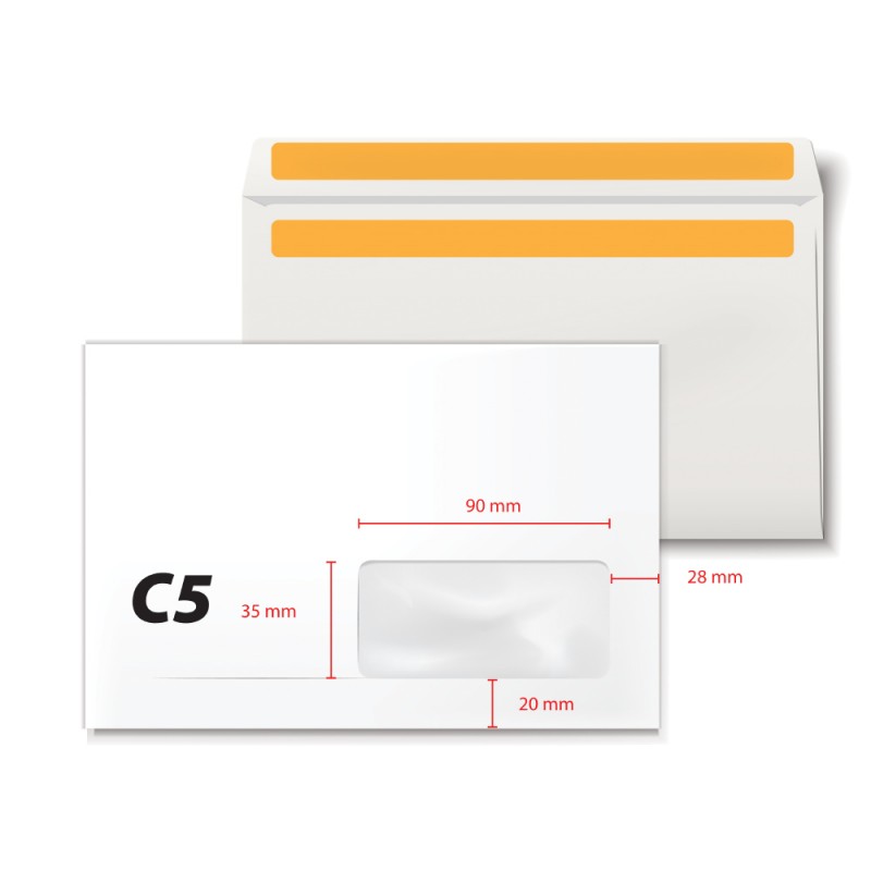 Plic C5, 162 x 229 mm, fereastra dreapta 35 x 90 mm, alb, autoadeziv, 80 g/mp, 500 bucati/cutie