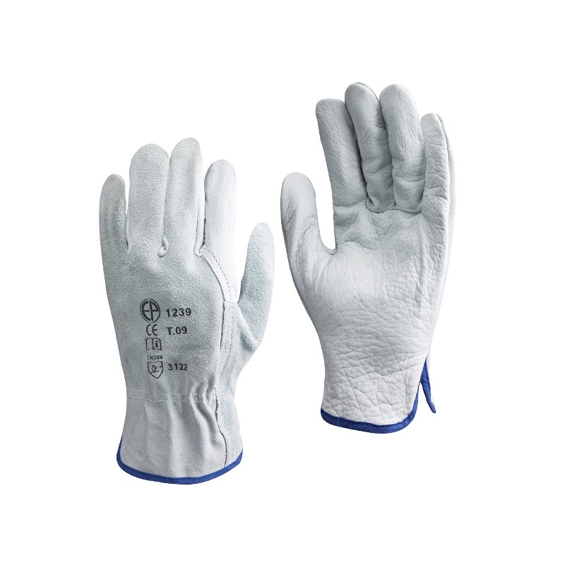 Manusi manipulare din piele bovina pe palma, cu piele spalt pe dosul palmei. Foarte elastica. Norma: EN388 (3122).