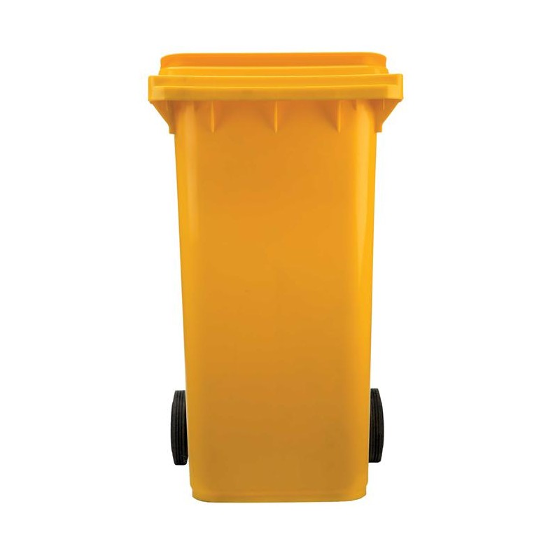 Fabricate din polietilena de inalta densitate, prin sistem de injectie. Capacul este prins de corpul pubelei cu doua nituri din plastic si are un maner continuu pentru manevrare usoara.