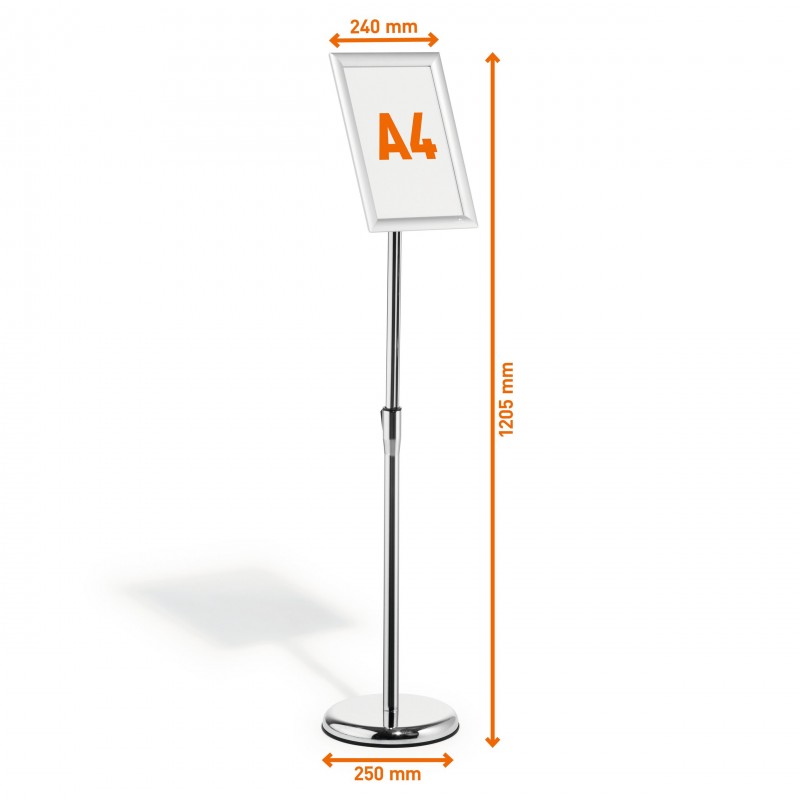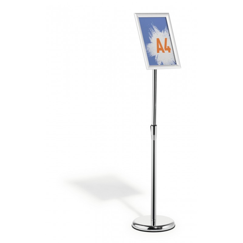 Stand cu panou informativ Durable, A4, rama click, argintiu, inaltime ajustabila 77-125 cm