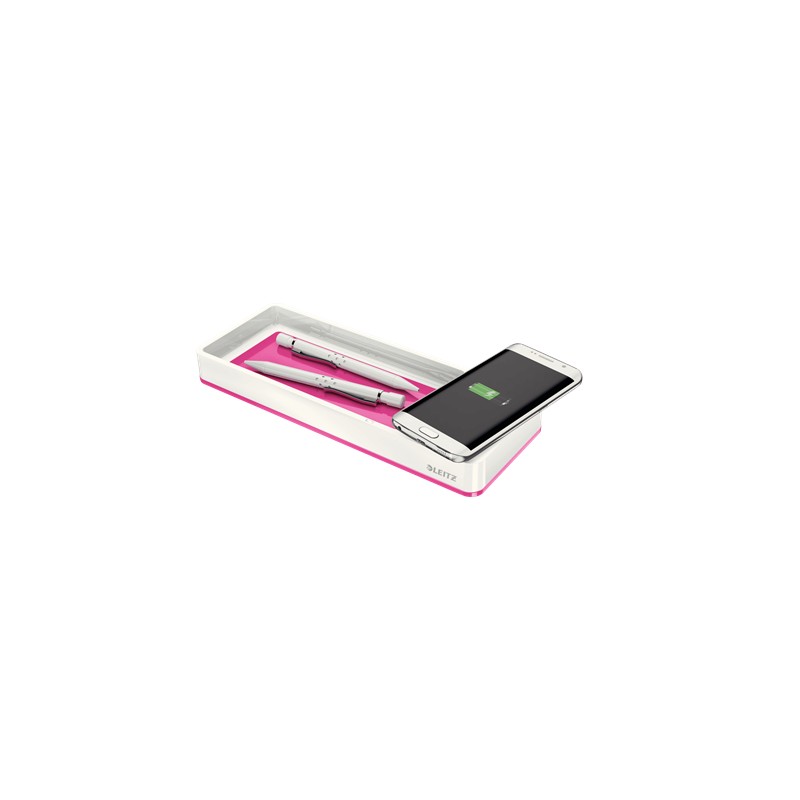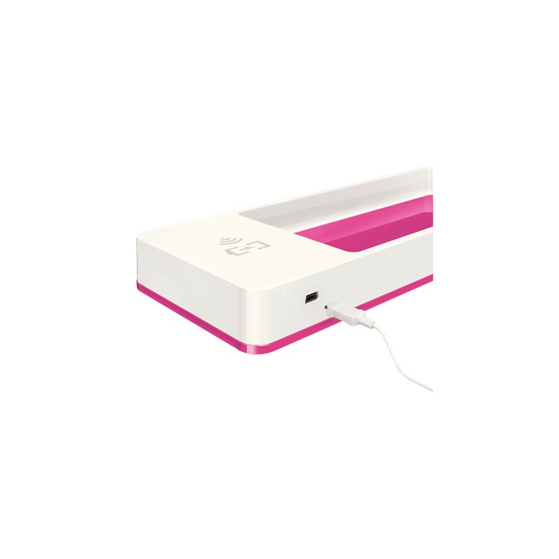 Suport organizator birou Leitz WOW, PS, cu incarcator prin inductie, culori duale, alb-roz