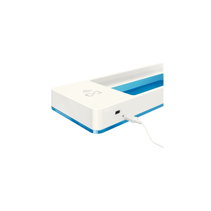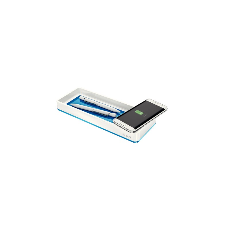 Suport organizator birou Leitz WOW, PS, cu incarcator prin inductie, culori duale, alb-albastru