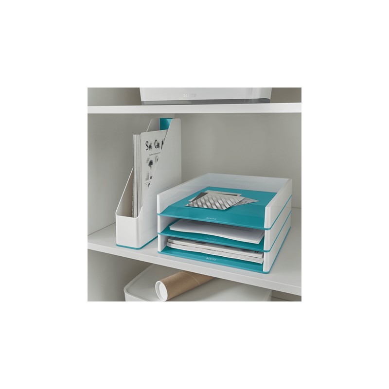 Suport vertical Leitz WOW, pentru documente, PS, A4, culori duale, alb-turcoaz