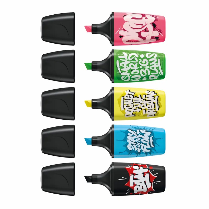 Textmarker Stabilo Boss mini by Snooze One, 5 culori/set, etui carton